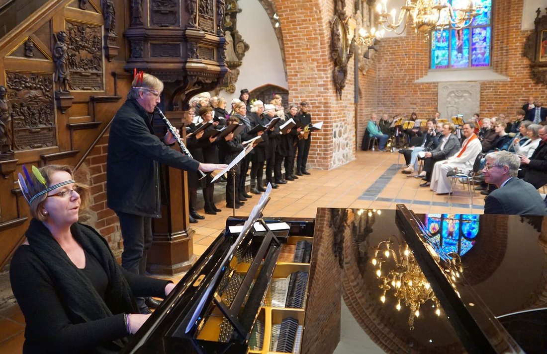 Diese Leidenschaft für Karl May inspirierte dann auch den von Katja Kanowski geleiteten St. Nicolai-Chor dazu, die Winnetou-Filmmusik zu intonieren, während die Pastoren mit Propst und Kirchengemeinderat auszogen – und später, zwischen vielen Glückwünschen und Grußworten, noch einmal mit Federn im Haar auf die Altartreppen zu treten und das Old-Shatterhand-Motiv anzustimmen. Ein letzter Beleg für den Freiraum, den sich die Kirchengemeinde St. Nicolai erarbeitet hat und erarbeiten möchte.