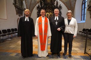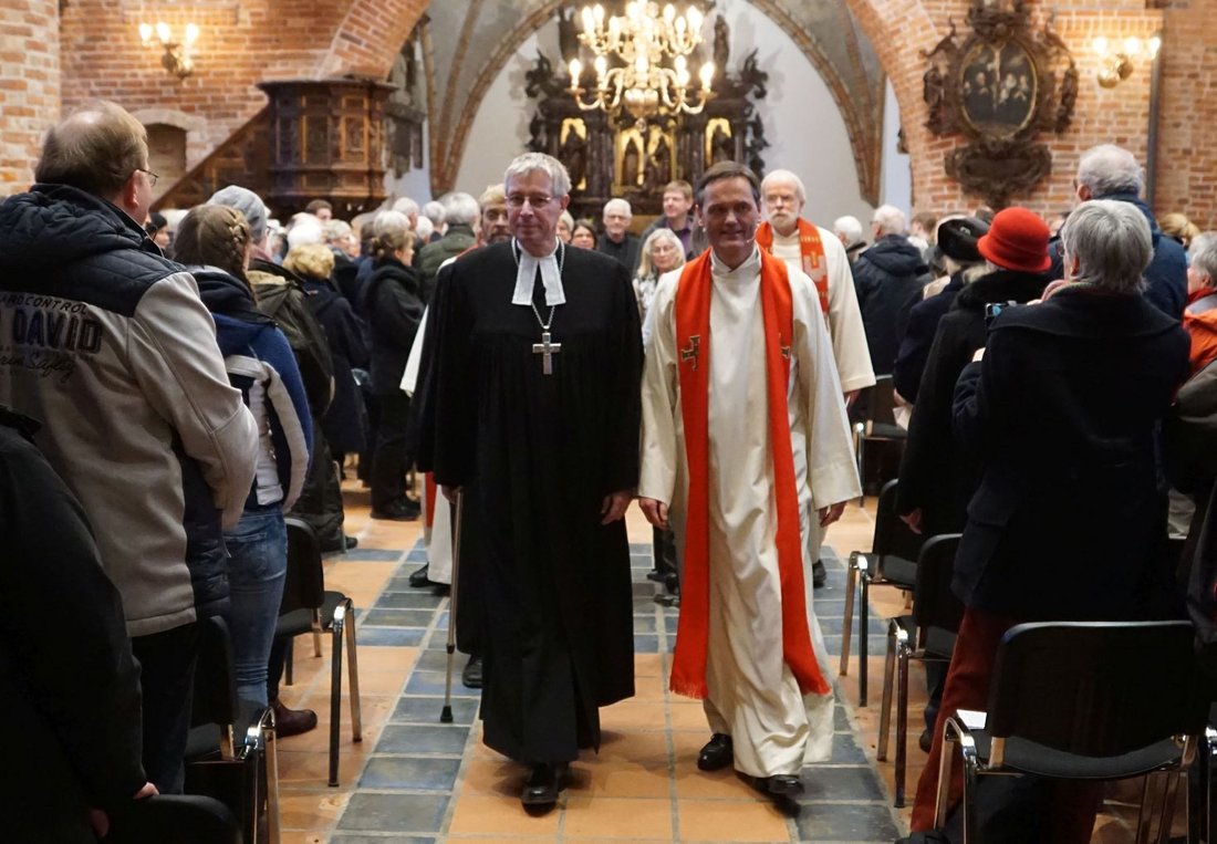 Die drei Pastoren zogen mit leuchtend roten Stolen in St. Nicolai ein, auch der Parament am Altar war rot: die liturgische Farbe eines hohen Kirchenfestes. Fast 300 Gottesdienst-Besucher füllten die Kirche. Und wiewohl sie genug Platz hatten auf den Stühlen, bezog sich der zu Beginn verlesene Psalm 31 eher auf den geistigen wie geistlichen Freiraum dieses Einführungsgottesdienstes: „Du stellt meine Füße auf weiten Raum“. Dazu passte auch das Lied „Du öffnest, Herr, die Türen, lädst uns zum Leben ein“.