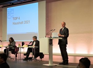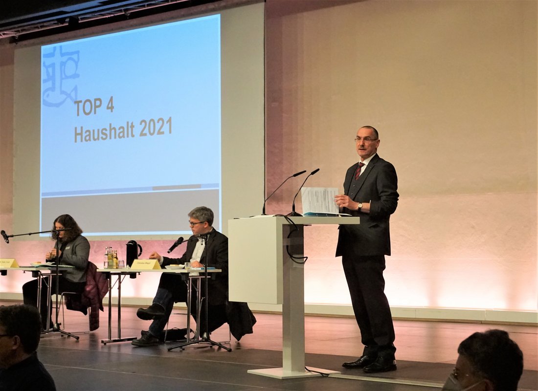 Für das Jahr 2021 rechnet der Kirchenkreis mit Einnahmen von 15,4 Millionen Euro, das sind fast 2 Millionen weniger als noch im Vorjahr. Der Rückgang ist auf geringere Kirchensteuern durch die Covid19-Pandemie zurückzuführen. Dieses Geld wird nach einem in der Finanzsatzung festgelegten Verfahren an die Kirchengemeinden, die Dienste und Werke sowie den Kirchenkreis verteilt. Ein Teil der Mindereinnahmen soll durch eine Entnahme aus der Ausgleichsrücklage aufgefangen werden, das hatte die Synode bereits im September beschlossen. „Außerdem werden wir in diesem Jahr den Rücklagen kein Geld zuführen, sodass wir eine höhere Summe als normalerweise verteilen können“, sagte Propst Matthias Krüger bei der Vorstellung des Haushaltes.
