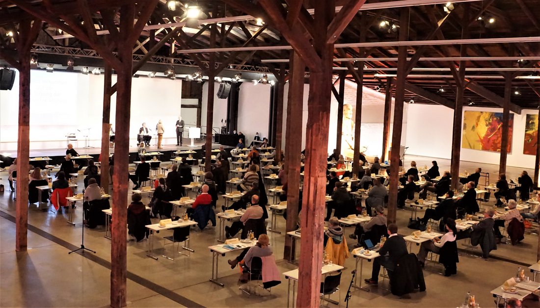 „Die Vermeidung von Kontakten hat eine hohe Priorität“, sagt Präses Maike Tesch, „Dennoch habe ich zu dieser Synode eingeladen, da die beiden Themen uns für die Zukunft handlungsfähig halten.“ Die Sitzung fand in der Thormannhalle in Büdelsdorf statt, sodass die Abstände eingehalten und ein Hygienekonzept gewährleistet werden konnten.
