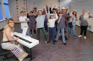 Es ist bereits der siebte Workshop dieser Art der Tourismuskirche. „Die meisten waren schon mehrfach dabei, sie wissen also, auf was sie sich einlassen“, sagt Claudia Gottuk-Brede. Die Kinder und die Erwachsenen kämen immer gerne wieder, erarbeiten sich am Tag die Szenen und lernen am Abend die Texte. „Es ist eine Herausforderung, die die Teilnehmenden stärkt.“ Es wird getanzt, gesungen, gespielt – und auch viel gelacht.
