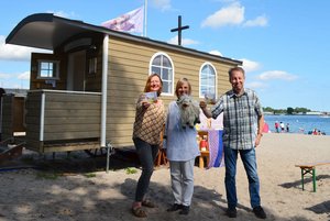 Um diese Reise sollte es gehen. Corinna Schell legte los. „Wenn ich ein Gefühl für den Text habe, dann geht alles sehr schnell“, sagt sie. Als die Geschichte fertig war, kam Illustrator Andreas Röckener aus Oststeinbek bei Hamburg mit ins Spiel. Corinna Schell legte den ersten Entwurf ihrer Geschichte vor, Andreas Röckener begann zu zeichnen. Hand in Hand entstand so eine Geschichte über Freundschaft, Sehnsucht nach Heimat, Gottvertrauen und Mut des kleinen Schafes Charly Mc Wild. Von Amerika aus macht es sich mit einem Segelboot auf in die weite Welt. Dabei trifft es auf Papperlapp den Papagei, Mirinda, die lebensbunte Schildkröte und andere Tiere, die ihm auf ihre ganz eigene Weise zur Seite stehen, es erlebt ein schweres Gewitter, verliert dort seine schönen Locken und für den Moment seinen Mut, bis es am Ende sein neues Zuhause findet - die Schäferwagenkirche am Strand von Eckernförde. „Es ist eine schöne Geschichte mit witzigen Figuren, einem Schuss Nachdenklichkeit und nicht nur für Kinder geeignet “, findet Andreas Röckener. Er hatte auch die Idee, die Kinder in dem Buch aktiv werden zu lassen, so können sie unter anderem Papperlapp Worte oder Bilder in seine Sprechblase legen.