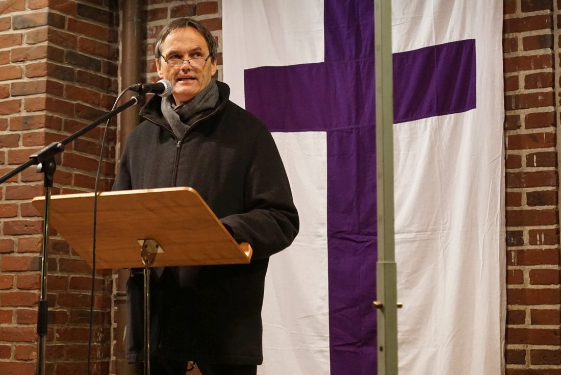 Der katholische Pfarrer Wolfgang Johannsen spricht danach über den Zusammenhalt zwischen den Kirchen. „Es hat sich atmosphärisch eine ganze Menge getan“, sagt er. „Die Kirchen sind für die Menschen da.“ Sie müssten diejenigen besuchen, auf die sonst niemand achtet. Auch Pastor Jordan möchte, das die Menschen miteinander reden statt übereinander. Es gehe ums Zuhören und darum, dass man sich interessiert wie der oder die andere wirklich lebt. Das Motto könnte lauten: „Lass Dir öfter sagen, was Du nicht hören willst“, so Jordan.