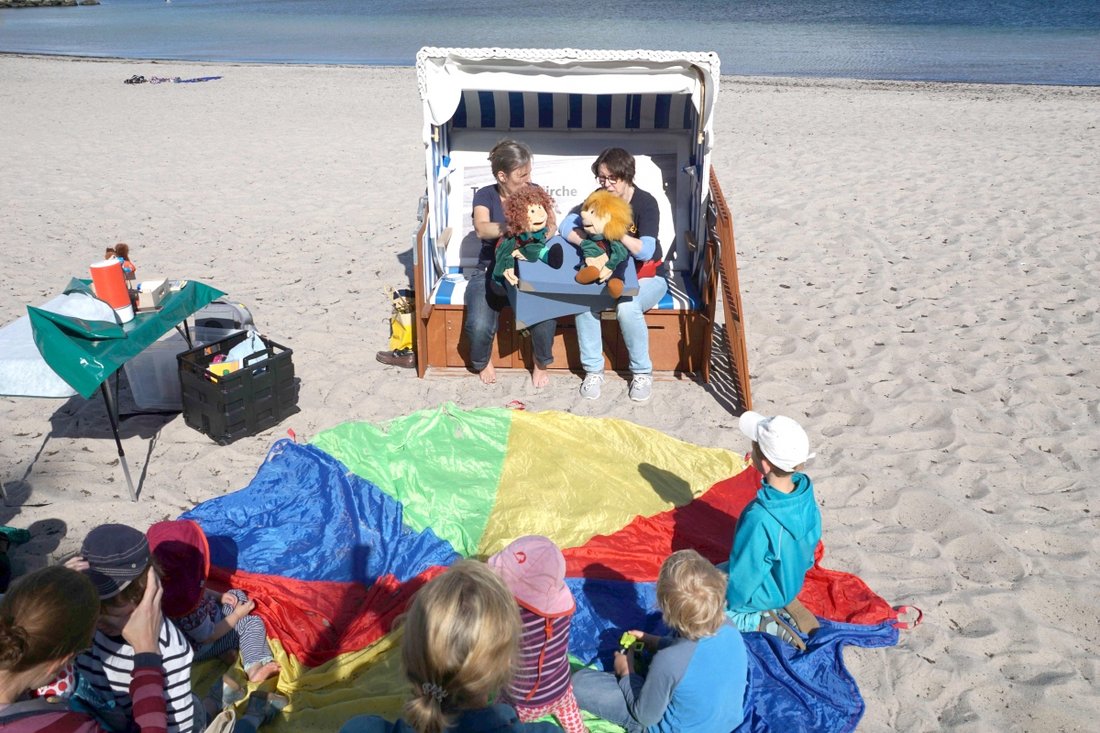 Eckernförde – Tom und Tina sind wieder am Eckernförder Strand. Die beiden Handpuppen gehören zur Kirche am Urlaubsort einfach mit dazu. Wenn um 17 Uhr die Gute-Nacht-Geschichte mit Liedern, Geschichten und Spielen beginnen, holt Tourismuspastorin Brigitte Gottuk die Puppen aus dem Koffer. Die Gute-Nacht-Geschichte gehört zum festen Bestandteil der Tourismuskirche und wird in den ersten vier Ferienwochen jeweils dienstags bis freitags am Strand neben der Schäferwagenkirche und nahe beim Ostsee Info Center erzählt. Wie das gesamte Angebot von Brigitte Gottuk ist sie kostenlos und steht allen offen – unabhängig von Religion oder Konfession. „Sie endet aber jedes Mal mit einem Segen“, sagt Gottuk.