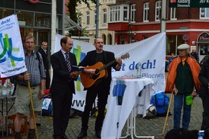 Rendsburg Eine Stunde früher als geplant sind sie am Donnerstag, den 17. September in Rendsburg am Schiffsbrückenplatz angekommen, die zirka 30 Pilger, die am vergangenen Sonntag in Flensburg für Klimagerechtigkeit gestartet sind. In vier Etappen sind sie von Flensburg nach Rendsburg gepilgert.