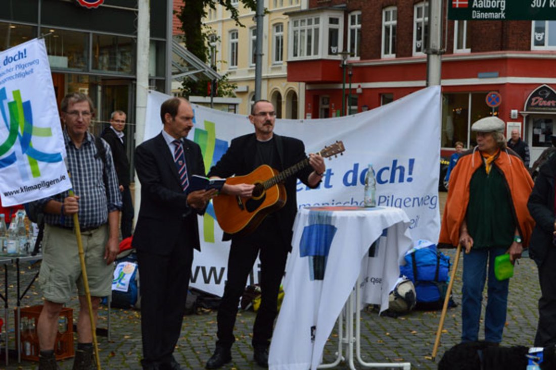 Michael Möbius aus Flensburg ist einer der Pilger, der eine Strecke von vier Etappen von Flensburg nach Rendsburg mitgelaufen ist. Ihn quält die Klimaentwicklung und wie die Menschen sich die Zukunft verbauen. „Ich bin ständig unzufrieden, dass ich so viel verbrauche. Wir verbrauchen pro Person im halben Jahr so viel, wie wir eigentlich in einem Jahr verbrauchen sollten“, sagte Möbius. Ein weiterer Pilger, Rudolf Krewer, meinte: “Ich kann nicht die Welt retten, aber meinen Beitrag dazu leisten, indem ich achtsam bin“.