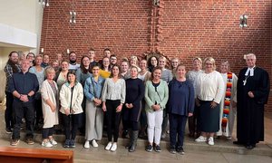 Neben dem geistlichen Zuspruch bekamen die Mitarbeitenden auch ein symbolisches Zeichen der Zugehörigkeit: Ein Schlüsselanhänger in Form einer Kirche zeigt, dass sie nun auch Teil des großen Ganzen Kirche sind. Denn schließlich werden die Kinder in den Evangelischen Kitas mit Gott groß – und die Mitarbeitenden stehen ihnen dabei zur Seite. Mit Gottes Hilfe.