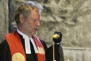 „Diese Kirche verkörpert eine ganz große Freiheit“, sagt Pastor Dirk Große zur Begrüßung. Und im Gottesdienst zum Jubiläum werden Freiheit und Vielfalt aber auch der politische Anspruch der Kirchengemeinde deutlich. Aus der Bibel wird in verschiedenen Sprachen gelesen. Das Kyrie, die Anrufung Gottes, wird untermalt von Fotos. Sie zeigten das Elend und Leid in der Welt, das die Gemeinde umtreibe, erläutert Pastor Okke Breckling-Jensen. Propst Sönke Funck erinnert sich zu Beginn an seine eigene Zeit als Konfirmand und in der Jugendarbeit im Eivind-Berggrav-Zentrum, „eine durchaus prägende Zeit auf meinem Weg in den kirchlichen Dienst als Pastor“, sagt Funck und bekennt, dass er zu denjenigen gehöre, die Atmosphäre und Anmutung des EBZ sehr mögen und schätzen.