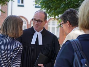 Auch der Vorsitzende des Kirchengemeinderates Hans-Hinrich Blunck, Pastorin Janina Boysen, Rendsburgs Stadtpräsident Thomas Krabbes, Schulleiter Berthold Kayma vom Helene-Lange-Gymnasium und Gudrun Lamich, Vorsitzende des Fördervereins zur Erhaltung der Christkirche, dankten Holtmann für seinen Dienst. Nach dem Gottesdienst und während des anschließenden Empfangs vor der Christkirche nutzten viele Gemeindeglieder noch einmal die Gelegenheit, ihrem Pastor persönlich Dank und Tschüss zu sagen