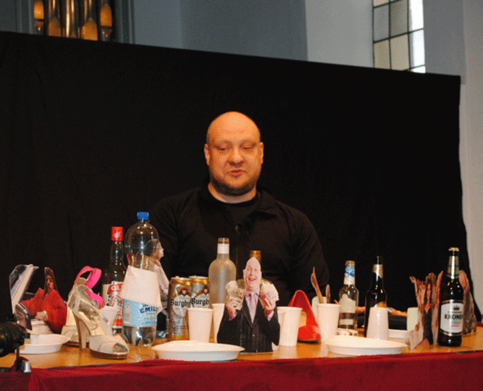Dort veranschaulichte er zum Beispiel die Geschichte vom barmherzigen Samariter mit diesen Gemüsen, und zwar so, dass sich der Sinn noch einmal ganz neu erschloss. Für die Kinder mögen in ihrer Phantasie die Darstellenden zu wirklichen Menschen geworden sein, für Erwachsene waren in den von Jungermann dargebotenen Texten etliche Denk- und auch Glaubensanstöße eingewoben. Dass man und frau sich von den guten Beispielen ein Stück abschneiden könnte wurde übrigens am Ende direkt umgesetzt: Ananas, Banane, Gurken und Paprika wurden bei "Radieschenfieber", so nennt sich das Programm des Figurenspielers und biblische Geschichtenerzählers, in mundgerechte Stücke geschnitten und an die Zuschauer verteilt. Dass Jesus ein Freund der Sünder gewesen ist und genau diesen Verachteten das Wasser des ewigen Lebens gegeben hat, wurde plastisch mit Pappbechern, einer Flasche frischen Wassers und Bierdosen und Stöckelschuhen vor Augen gestellt. Was zunächst befremdlich gewirkt haben mag, entpuppte sich als gelungene Übertragung der Jesus-Geschichten und lud zum Nachdenken, Schmunzeln und dann auch zum Glauben an diesen Jesus ein. Zunächst verstand es Matthias Jungermann Kinder und ihre Eltern mit seinen überraschenden Darstellungen und seinem Erzählen zu begeistern und konnte dann einige Zeit später eine - leider nur kleine - Schar von Erwachsenen für seine Art des biblischen Erzählens gewinnen. Wer sich jetzt schon mal selber ein Bild machen möchte, kann das auf dem im Internet bekannten Videokanal unter dem Suchbegriff Radieschenfieber tun. Und wird sich bei einem weiteren Auftritt des Figurenspielers Jungermann im Rendsburger Raum den Liveauftritt sicher nicht entgehen lassen.