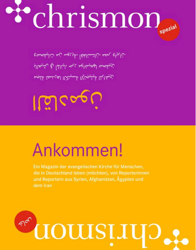 Nach dem großen Erfolg des Magazins chrismon spezial für Geflüchtete im Mai 2016 gibt die Evangelische Kirche in Deutschland (EKD) ein zweites mehrsprachiges Magazin für Flüchtlinge heraus. Das 24-seitige Heft trägt den Titel „Ankommen!“. Es erscheint zweisprachig in Arabisch/Deutsch und Persisch/Deutsch.