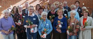 Neben den wellcome-Ehrenamtlichen, die in den Familien benötigte Hilfe leisten, arbeitet wellcome mit dem Netzwerk der Frühen Hilfen im Kreis Rendsburg-Eckernförde sowie Geburtskliniken, Hebammen, Gynäkolog_innen, Kinderärzt_innen, Beratungsstellen aller Art, sozialen Einrichtungen, Freiwilligenorganisationen, Kirchengemeinden etc. zusammen. Ein besonderer Dank gelte vor allem den 23 Ehrenamtlichen, die sich bei wellcome Rendsburg engagieren, stellt wellcome-Koordinatorin Gabriele Lüttmer fest: „Die wellcome-Ehrenamtlichen helfen den Familien schnell und konkret. Sie sorgen dafür, dass aus kleinen Krisen keine großen werden, denn häufig kommt es gar nicht zu größeren Problemen, wenn Eltern frühzeitig entlastet werden.“ In der Feierstunde überreichte sie den anwesenden wellcome-Engeln gemeinsam mit der Leiterin der Evangelischen Familienbildungsstätte Rendsburg-Eckernförde, Frauke Kondritz, und Propst Sönke Funck Blumen und dankte ihnen für das Engagement.