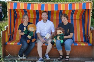 Eckernförde – Mehr als zwei Meter breit ist der Strandkorb, da ist sich Angelika Langfeldt sicher. Die Teamerin der Kirche am Urlaubsort legt sich testweise daneben in den warmen Sand: „Ich bin über 1,70 Meter, also sind das bestimmt zwei Meter“. Wichtig ist das, weil das Team der Kirche am Urlaubsort um Tourismuspastorin Brigitte Gottuk noch ein Banner für den fünfsitzigen Strandkorb besorgen muss. Schließlich geht es bald los mit den Angeboten am Strand, freut sich Langfeldt: „Man darf hier wieder zum Kind werden, wir holen Gott an den Strand und in den Strandkorb – was gibt es schöneres?“