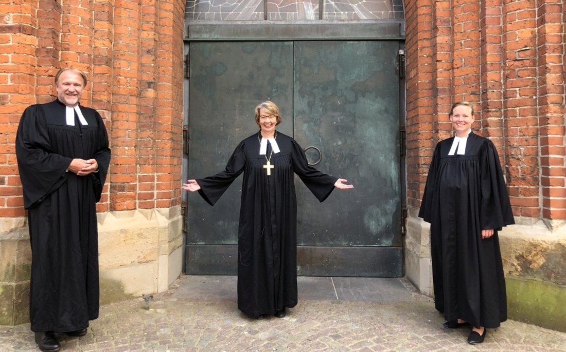 Nach dem Gottesdienst, den Pastor Rainer Karstens und Pastorin Karoline Rahe-Dechant gemeinsam mit der Landesbischöfin und weiteren Mitwirkenden gestalteten, gab es noch Zeit für Begegnung. Viele der knapp 100 Teilnehmenden blieben, tranken Kaffee, schauten sich die Ausstellung an und nutzten die Zeit für Gespräche. Draußen und mit Abstand wurde noch ein gemeinsames Lied gesungen. Mit dem Reisesegen der Landesbischöfin endete ein „sehr gelungener Tag“, so Pastor Karstens, der auch Vorsitzender des Kirchengemeinderats von St. Marien ist.
