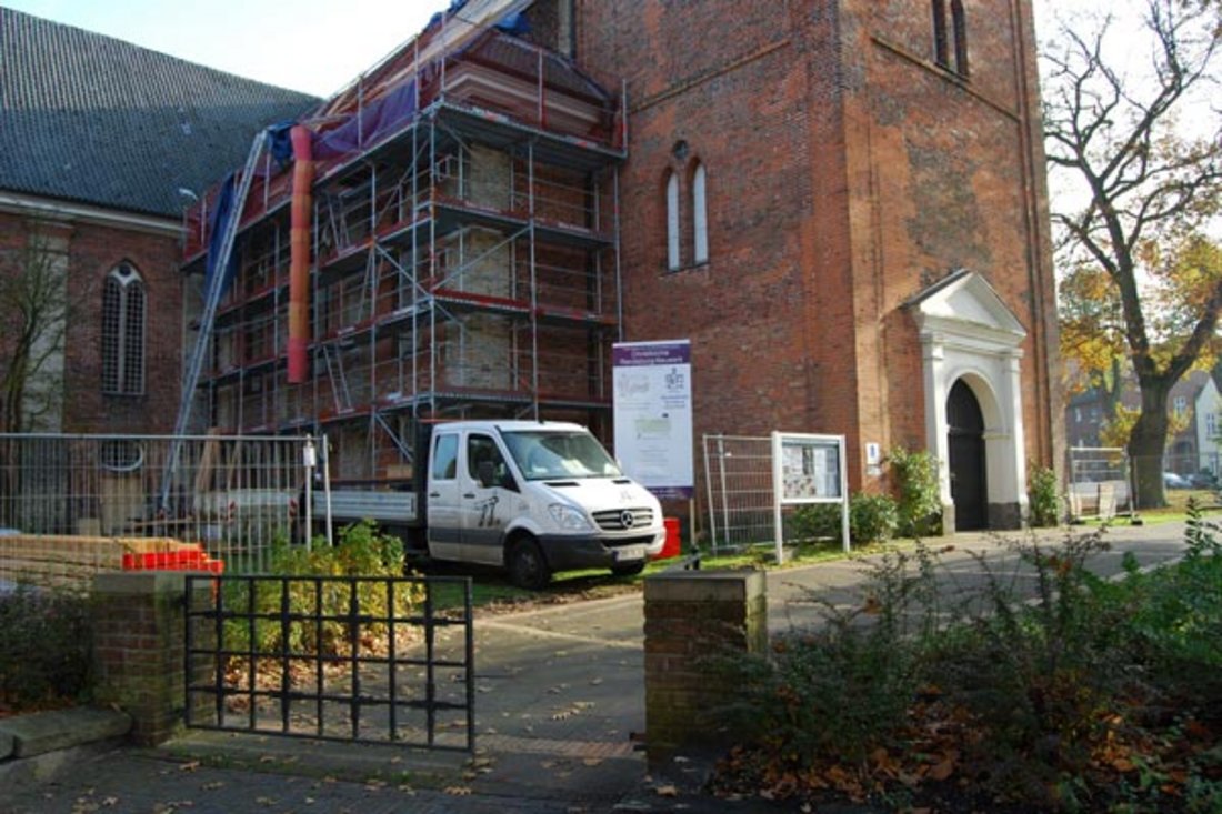 Aufmerksam kontrolliert Sigfried Faaron jede Fuge. Sobald er merkt, dass der Mörtel lose ist, entfernt er ihn mit Hammer und Meißel. Fuge für Fuge arbeitet er sich voran, ersetzt den alten Mörtel durch neuen. Sigfried Faaron ist einer der Handwerker, die sich zurzeit um die Sanierung der Rendsburger Christkirche kümmern. Warm eingepackt in mehreren Kleidungsschichten trotzen sie Regen und Kälte. Noch in diesem Jahr soll der erste Bauabschnitt der Kirchensanierung fertig werden.
