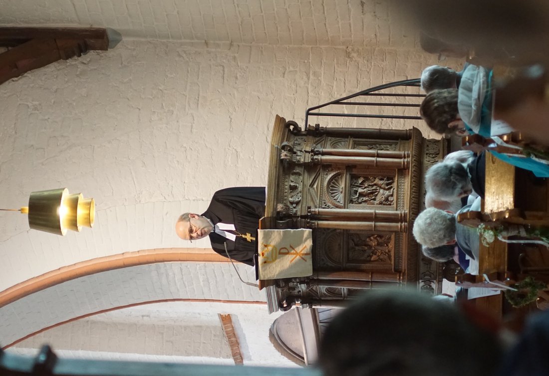 Hütten/Rendsburg - Am Morgen hüllte sich das Geburtstagskind noch vornehm in Nebel, sodass es ausnahmsweise nicht schon von weitem zu sehen war: Die Kirche zu Hütten feierte am Sonntag ihren 700. Geburtstag. Die Festgemeinde fand den Weg trotz schwierigen Sichtverhältnissen in die festlich geschmückte Kirche. Der Gottesdienst wurde gestaltet von Pastorin Kerstin Hansen-Neupert und Propst Sönke Funck, die Predigt hielt Bischof Gothart Magaard. Ein freudiger Anlass und der Tag sei sehr gut gewählt, erklärte Magaard: "Der Sonntag Kantate ist wie kein zweiter geeignet, ein solches Fest zu feiern. Wir feiern heute, dass an diesem Ort seit 700 Jahren Menschen zusammenkommen, um zu Gott zu beten, ihn zu loben oder ihm zu danken. Die 'Hütte Gottes' ist ein Ort, an dem Gott den Menschen nahe ist und er bei ihnen ist. Hier finden Menschen Schutz in Zeiten, in denen es im Leben stürmisch zugeht. Hier kommen sie zusammen, um zu singen und zu feiern. Doch Gottes Wort wird in der Kirche nur lebendig, wenn sich die Menschen davon berühren lassen. Wenn wir in der Kirche den Mut finden, das Band der Liebe, Freundlichkeit und Geduld anzuziehen, dann wird die Kirche zu einer 'Hütte Gottes'.".