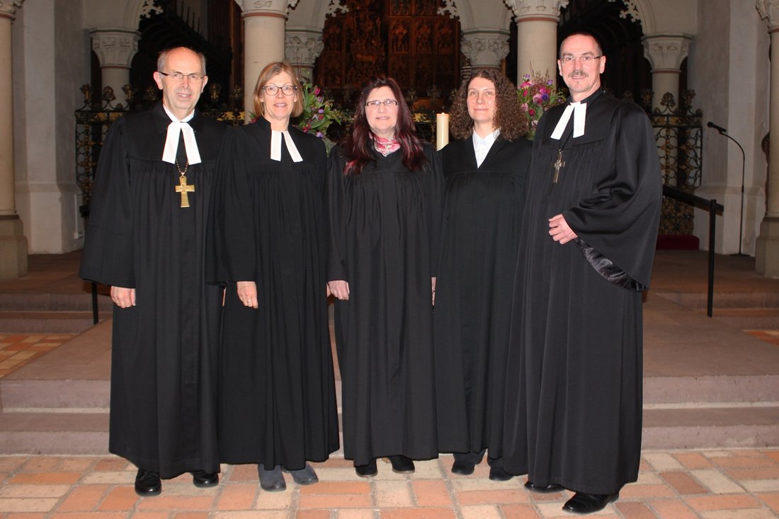 Schleswig - Dr. Maike Tesch hat ein aufregendes Wochenende hinter sich. Am Sonnabend wurde die Ehrenamtliche aus der Kirchengemeinde Nortorf zur neuen Präses der Kirchenkreissynode des Kirchenkreises Rendsburg-Eckernförde gewählt. Am Sonntag ist sie dann von Bischof Gothart Magaard gemeinsam mit neun weiteren Frauen und Männer als ehrenamtliche Predigerin (Prädikantin) im Schleswiger Dom eingeführt worden. Als zweite neue Prädikantin im Kirchenkreis wurde Sabine Jaskulke aus Büdelsdorf eingeführt. Sie arbeitet in ihrer Gemeinde auch als Küsterin.