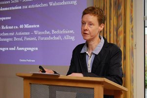 Den Hauptvortrag hielt als Gastrednerin Dr. Christine Preißmann, Ärztin für Allgemeinmedizin und Psychotherapie. Sie selbst ist Betroffene. Preißmann, Jahrgang 1970, bekam im Alter von 27 Jahren die Diagnose Asperger-Syndrom.